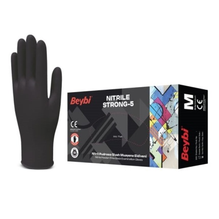 Strong-5 Pudrasız Siyah Nitril Muayene Eldiveni – 100’lük Kutu