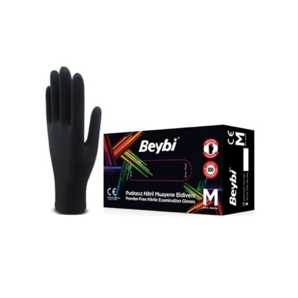 Pudrasız Siyah Nitril Muayene Eldiveni – 100’lük Kutu
